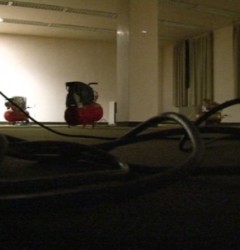 Osservando tutta l’opera, si può notare un compressore collegato al quadro: